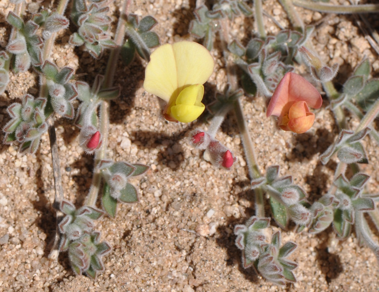 PERENNIAL. A creeping pealike plant with soft, downy leaves and