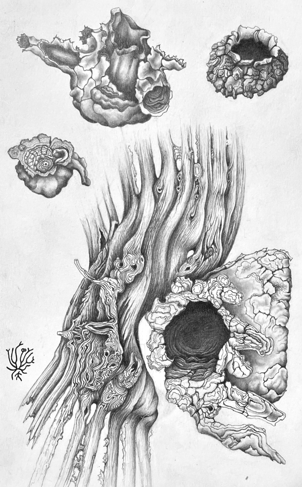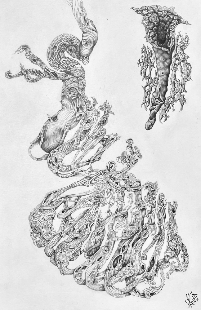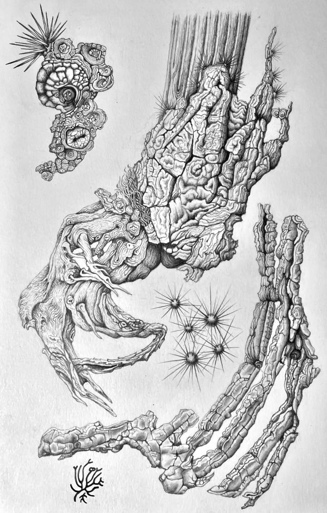 “Desert Hornpods” graphite and carbon pencil, 2024.